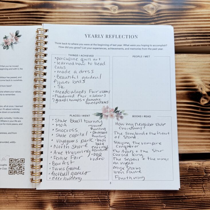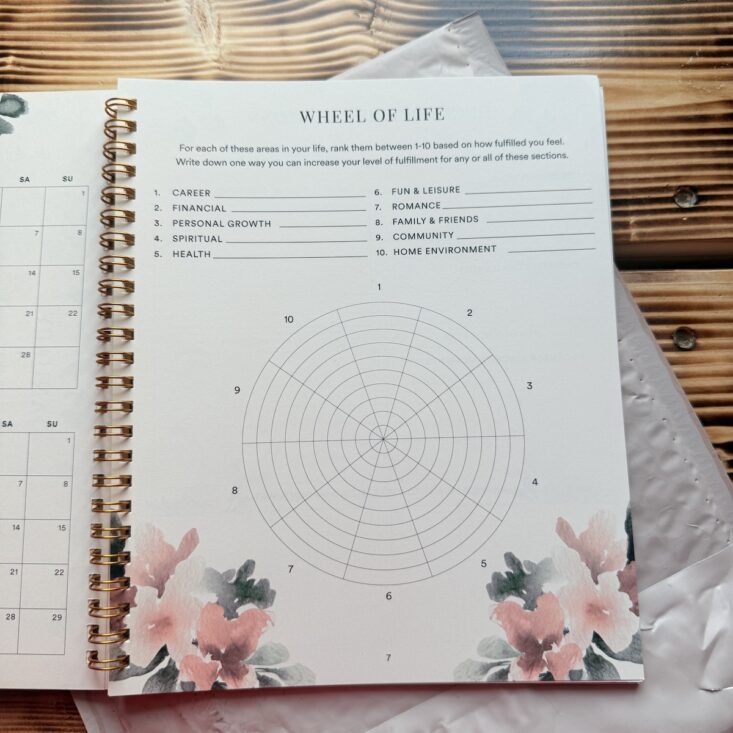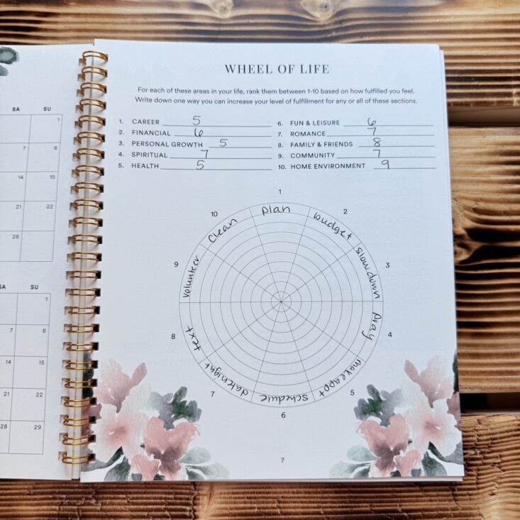 On the opposite page, there’s a “Wheel of Life,” where we rank 10 areas of our lives based on how fulfilled we feel. It also provides space to write down ways to increase our level of fulfillment in each area. As a great way to start the new year, this exercise encouraged me to reflect on where I am now and how I can become a better version of myself in 2026.