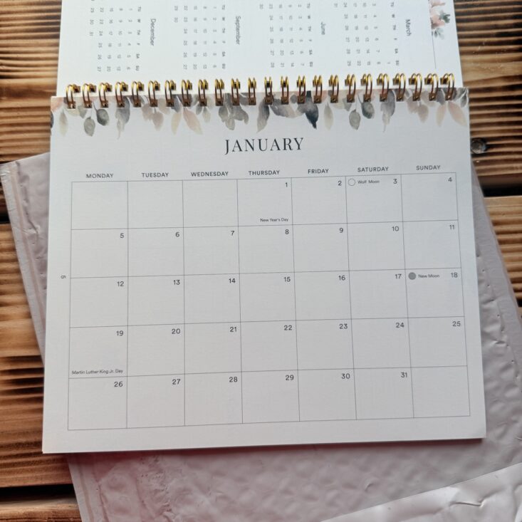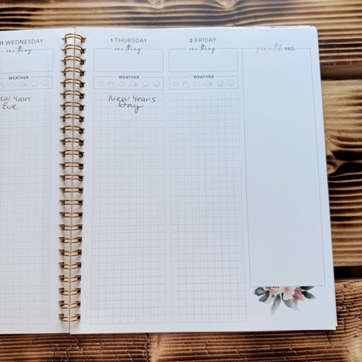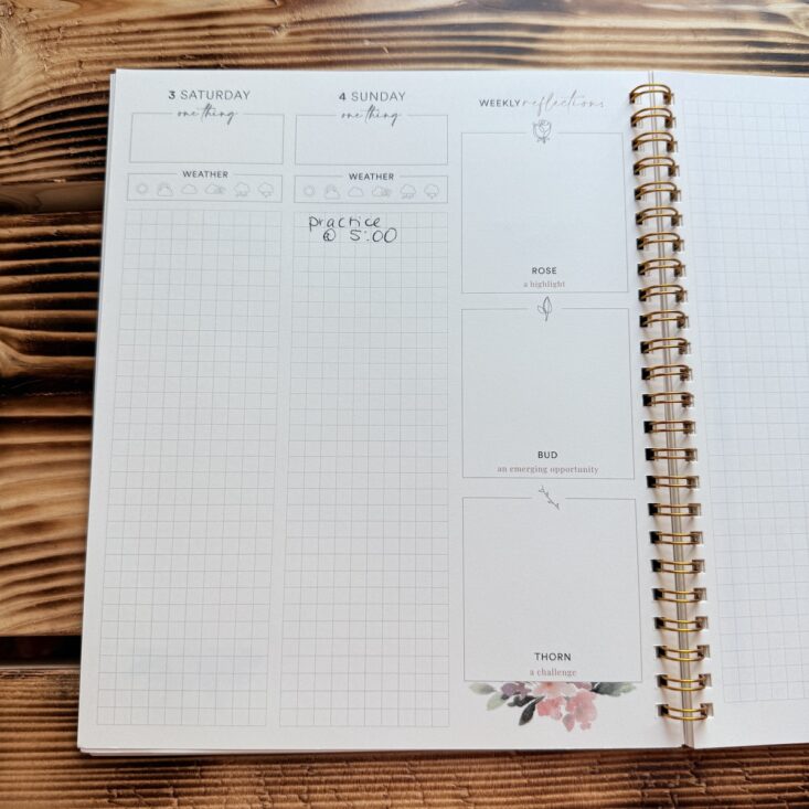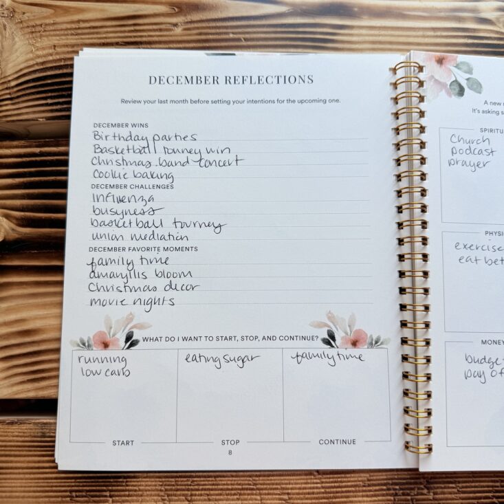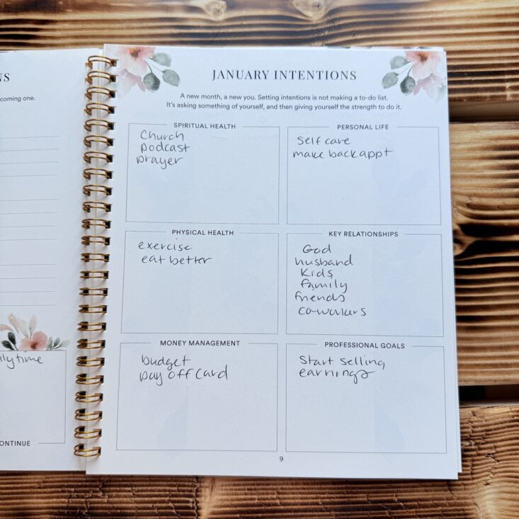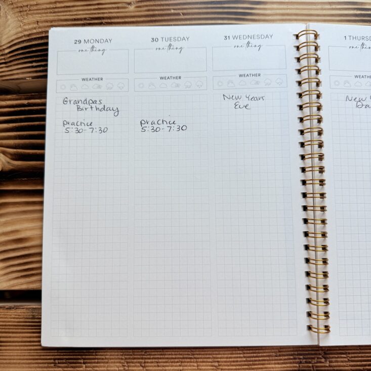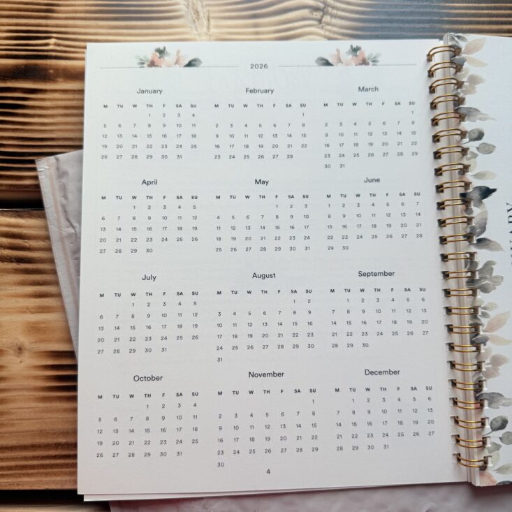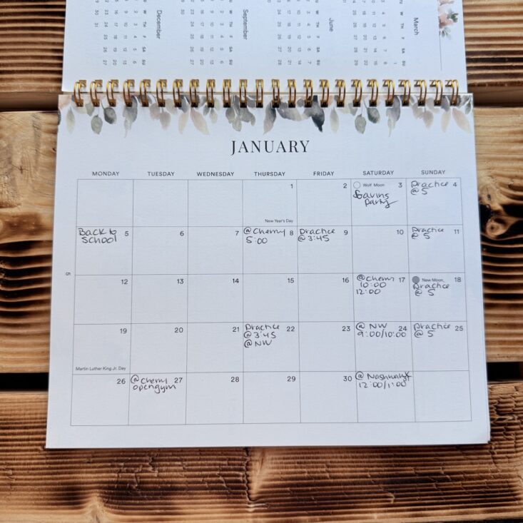 January typically isn’t too crazy, though basketball will definitely have us on the go. To keep track of all the games and practices, I rely on this planner to keep myself from spiraling into chaos. I’m definitely a Type A person—I need things planned and scheduled—and this calendar helps me stay on top of everything. Staying organized is a huge help for my anxiety, and having a quick-reference calendar right at the front of the planner helps keep me grounded and calm when life gets hectic.