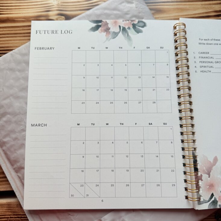On page 6, we turn to the “Future Log,” which includes two small calendars for the upcoming months. There’s just enough space to jot down quick notes—and honestly, I’m so focused on the now that I don’t even want to think about February or March! 😜