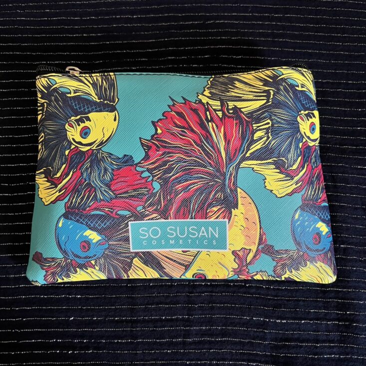 This month's bag is a gorgeously colorful print. I love it when So Susan does an animal print; this one is extra funky with its bright hues and whimsical fish.