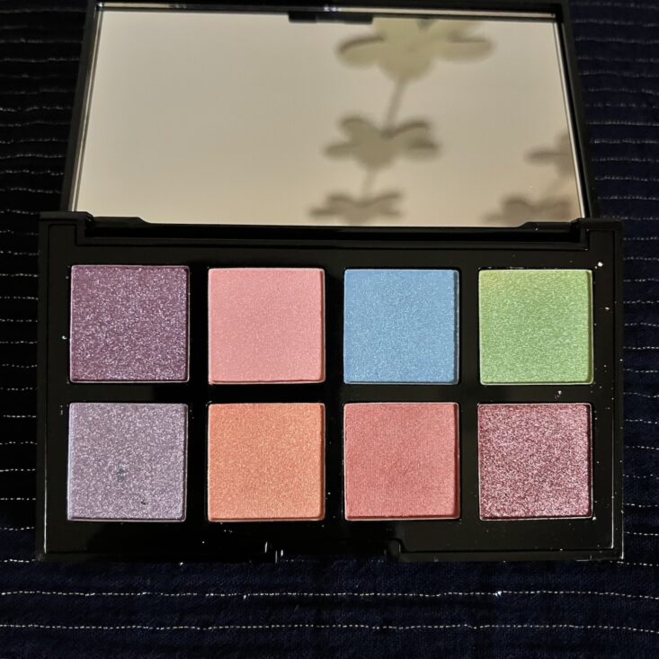 I am absolutely loving this month's eyeshadow palette. It has eight metallic shades, which you could easily use all over the lid for a brilliant pop of color or blend together for an 80's throwback look (that blue and green combo would kill!). Each shade has really great pigmentation and even shimmer, even the lighter colors.