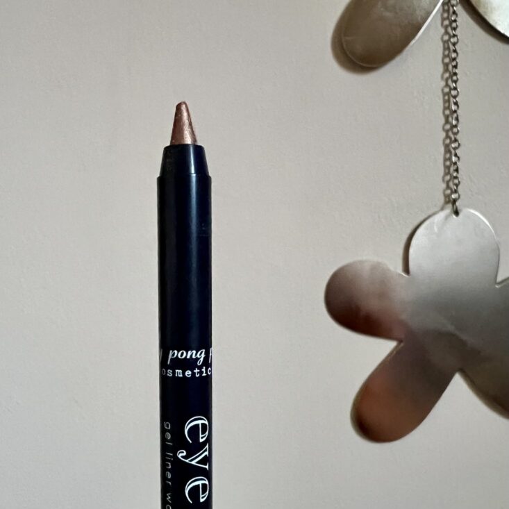 This is a beautiful shimmering bronze color; it was a little stiff at first but softened after a few strokes. The color is dimensional and looks great all over the lid; I love the sparkle! The color did not fade or smudge all day.