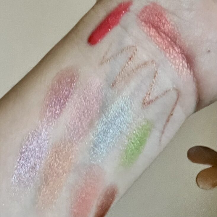 Swatched Above: Trifle Cosmetics Treacle, Kaleido Glow Blush, Jelly Pong Pong Eye Smolder, So Susan Subtropical Palette