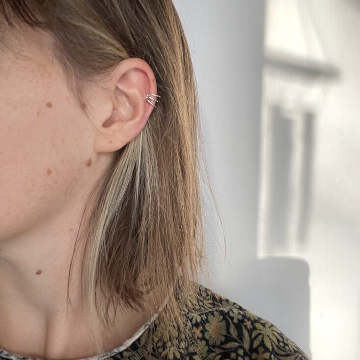 It's amazing something so small and relatively simple can have such an impact! I love how the triple cuff looks worn alone—such a tasteful adornment when a little something extra is needed. I can see myself wearing one on each ear, and I love that they aren't symmetrical. I wear big earrings almost every day, and these would go great with or without a pair hanging from my lobes.