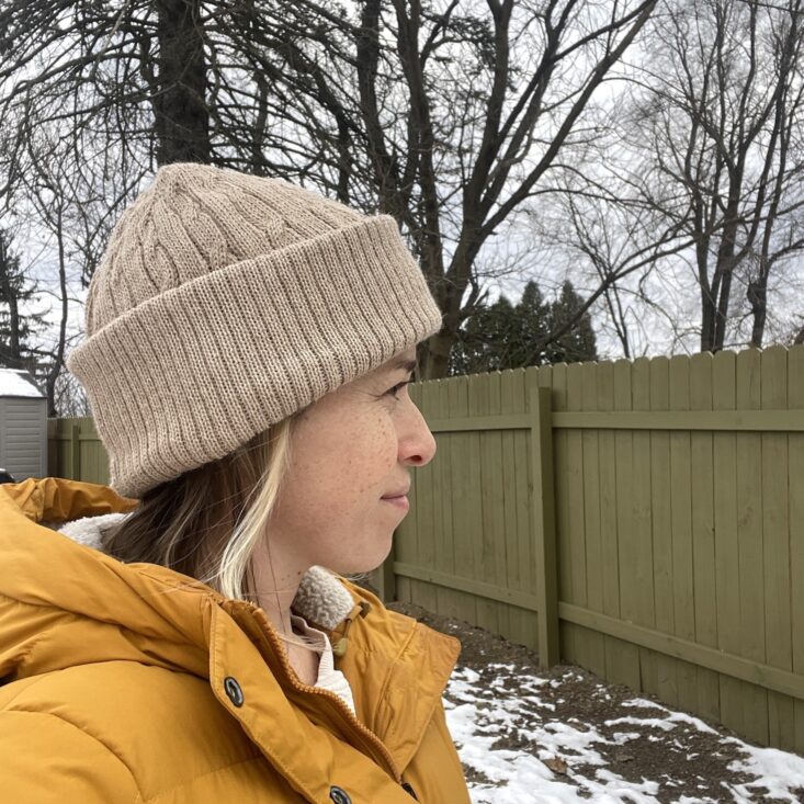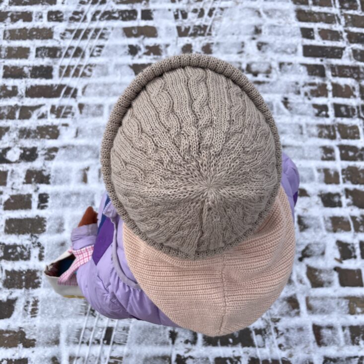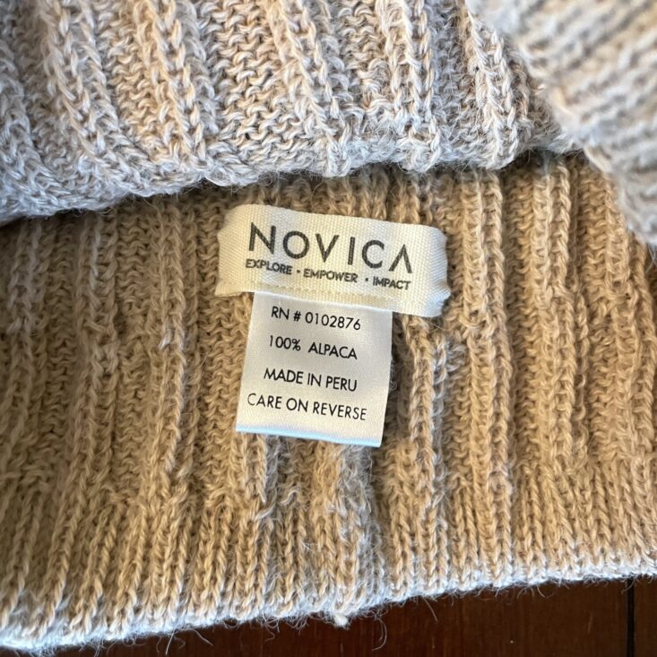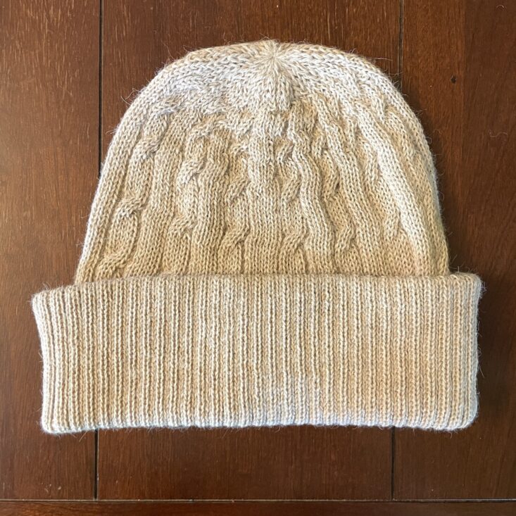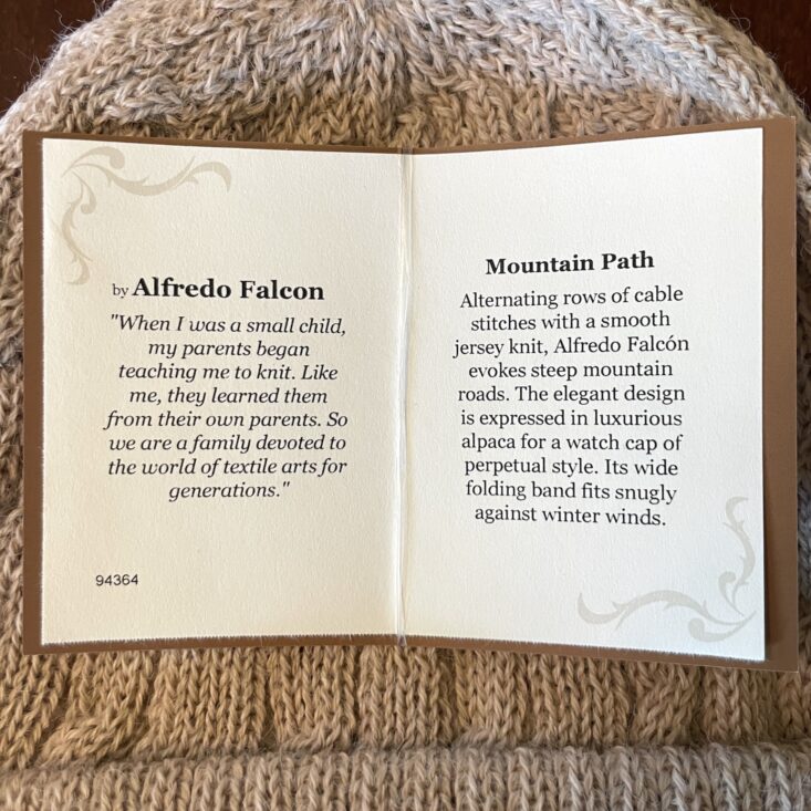 I enjoy being surprised by subscriptions, and this hat really did surprise me! Firstly because its alpaca wool is such a fine knit and the cables seem so perfect, it's hard to believe it's handmade. The info card shares that maker Alfredo Falcon learned to knit as a child, keeping a generations-old craft alive in his family. But secondly the wheat color is so surprisingly cozy. I like that even when double-folded, the band is thick, so it keeps the ears very warm. The hat is roomy and stretches but also keeps its shape—so it actually fits everyone in my family ranging from my big-headed husband to my youngest child (who has claimed this hat as her own).