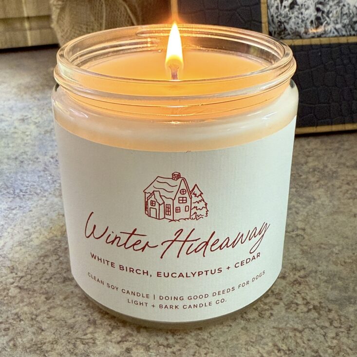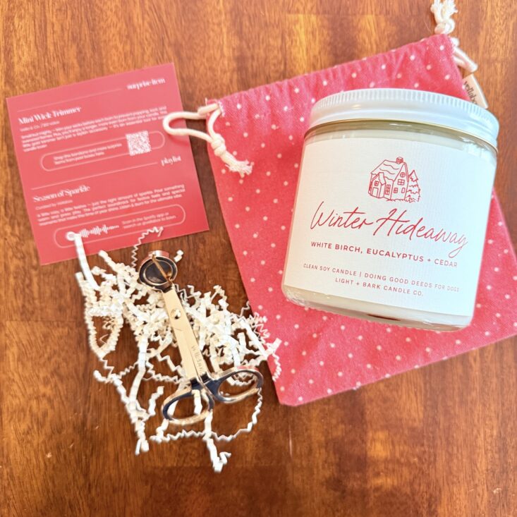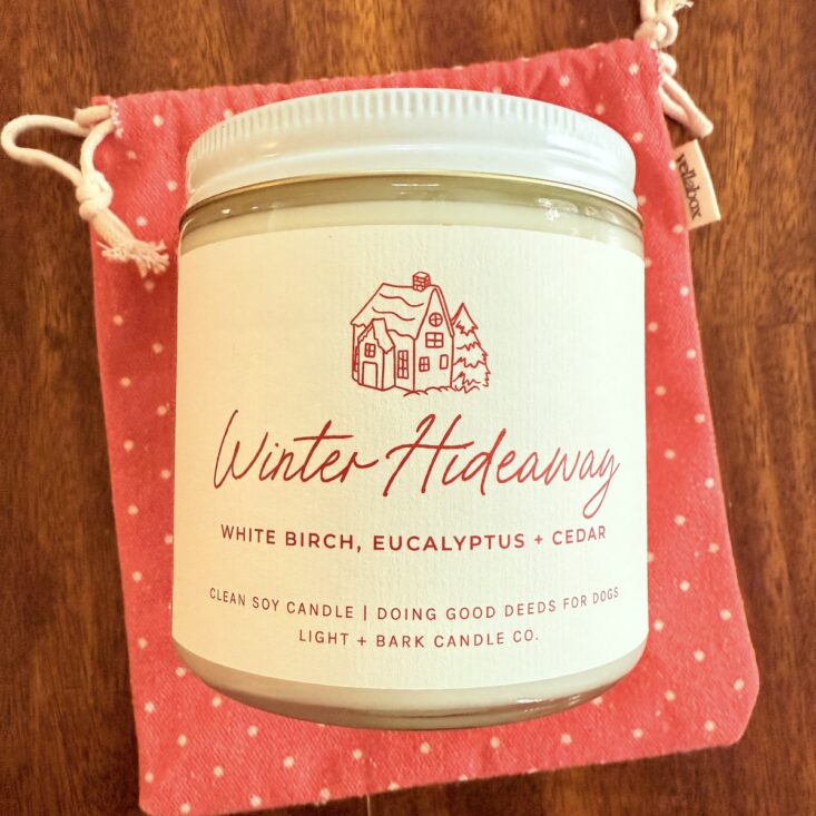 The scent I received for December is “Winter Hideaway,” which features notes of eucalyptus, clove, amber, birch, cedarwood, labdanum, leather, and patchouli. This combination is perfect for December—woodsy, cozy, and full of holiday warmth that complements all the red and green decorations.