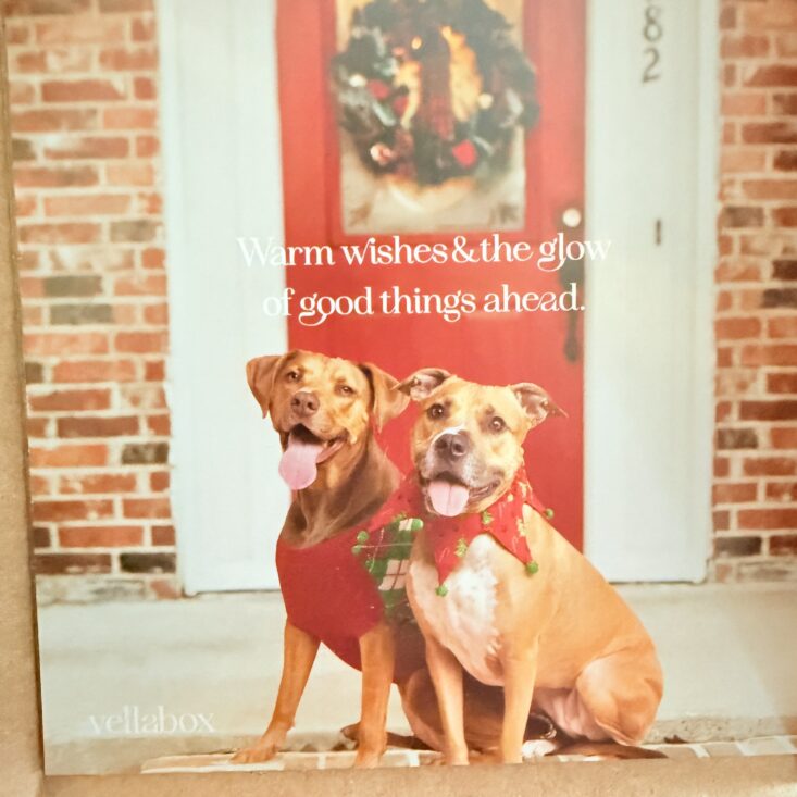 To mark the upcoming Christmas holiday, this month’s Vellabox arrived just in time to add a little extra cheer and help create those calm, cozy nights after long, hectic days. December’s quote really resonated with me—the cute pups and the sweet message were the perfect way to kick off the month.
