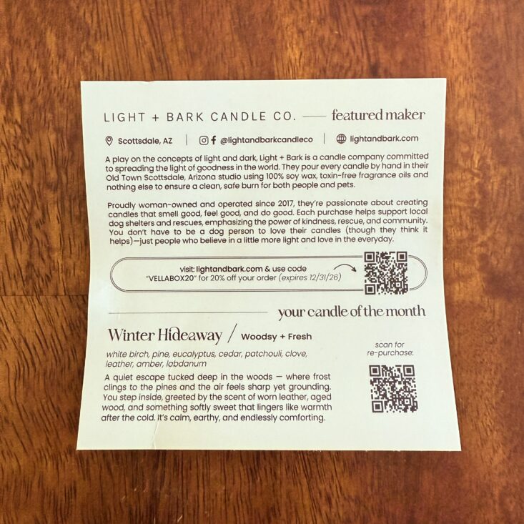 Vellabox is a fabulous subscription and one I look forward to receiving each and every month. Since I burn candles almost every day, it’s important to me that they’re free of toxins and harmful ingredients. Vellabox does an excellent job of curating small brands that are not only safe to use but smell incredible too! This month’s Winter Hideaway scent was absolutely perfect for creating a calm space and included some of my very favorite scent notes. With the addition of the Spotify playlist and the useful wick trimmer, my month felt complete. I already can’t wait to see what’s in store for January!