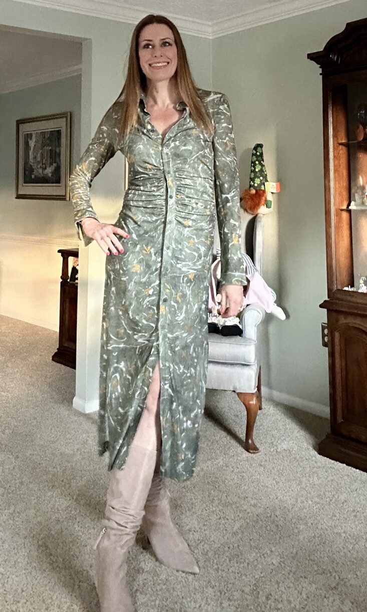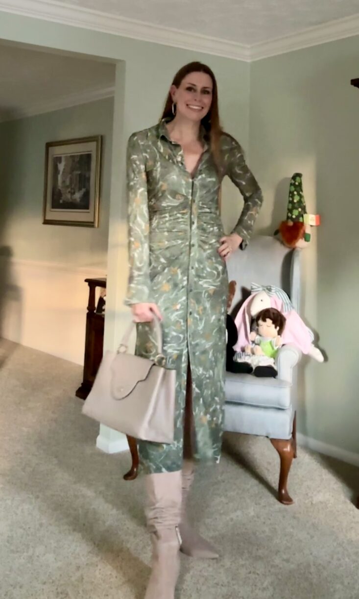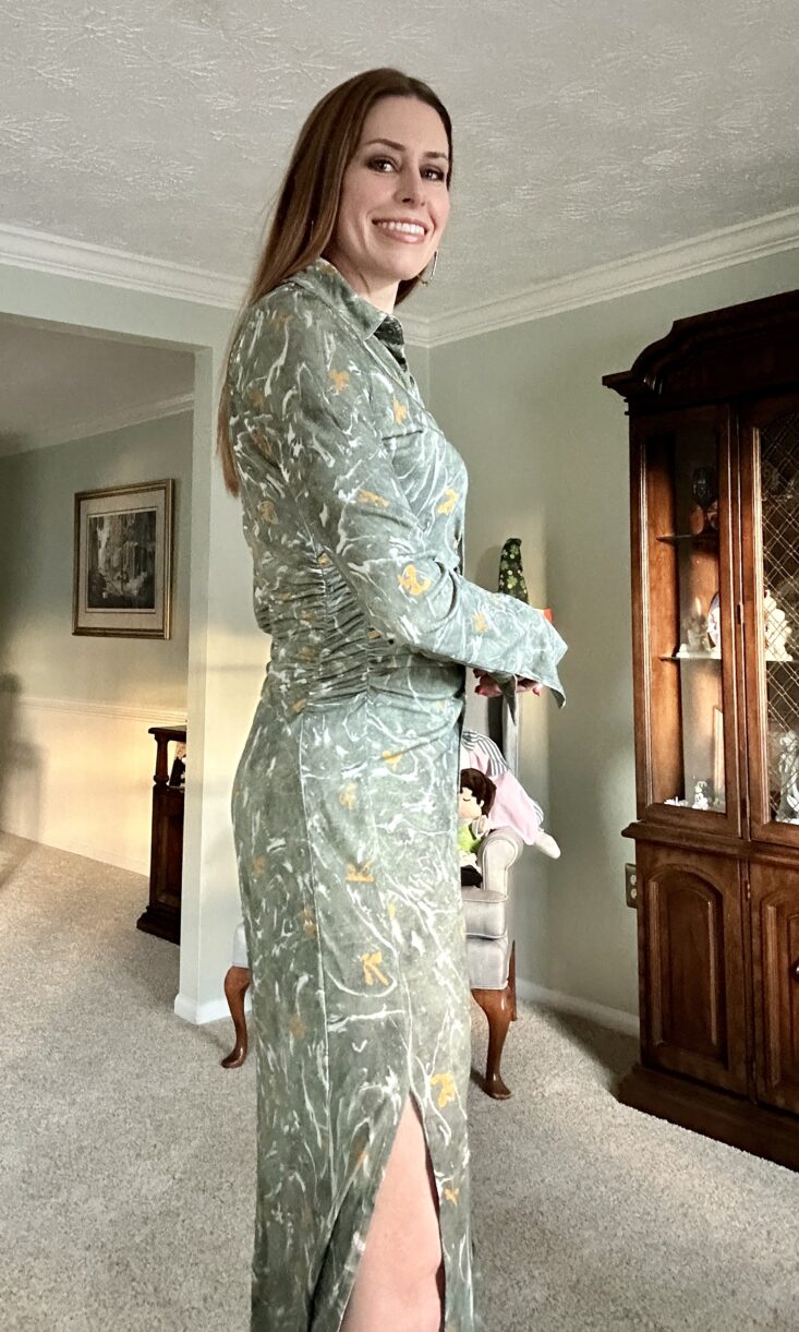 Honest review: I didn’t love it at first, but then I wore it to Boston and got so many compliments. Maybe they know something I don’t? Still, for nearly $1,400, I expected more. No slip. No stretch. And a bird print that bordered on childish. Cute, yes. Couture-level? Not quite.