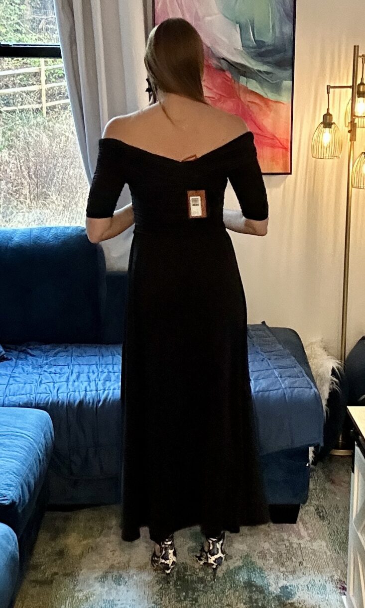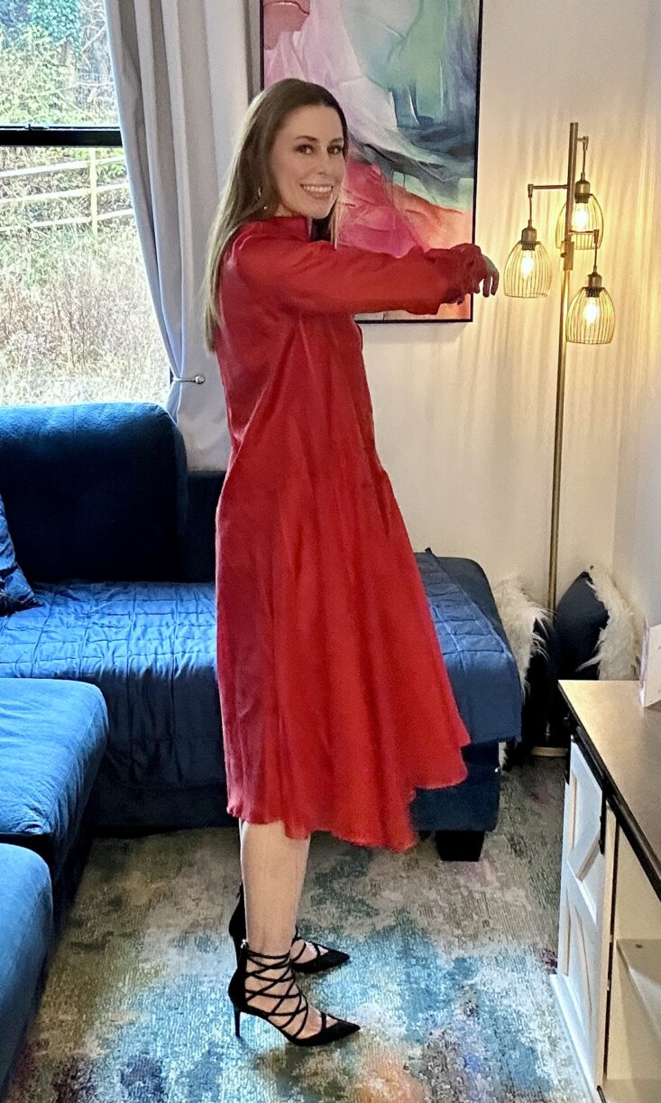 Honest review: What in the super-stylish great-grandma is this dress?! It’s basically one giant red flag… much like the men I seem to attract these days. Fitted on top, parachute on the bottom, and giving “luxury devil costume” in the most confusing way possible. It's stiff, crunchy, and totally unflattering!