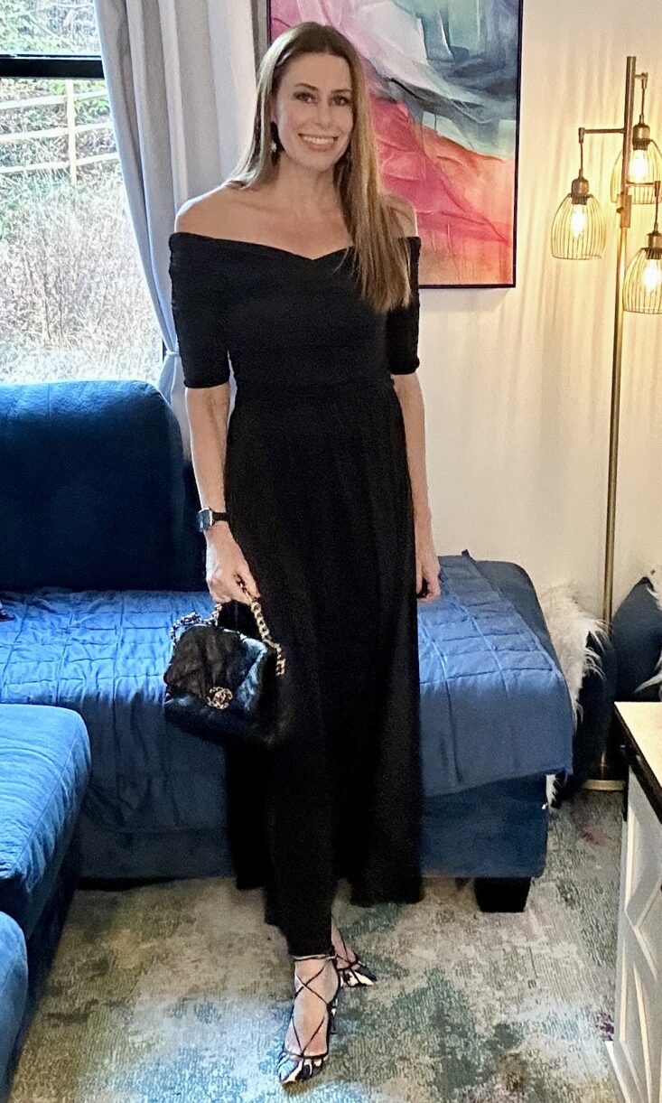 How I styled it: So, I didn't end up wearing this dress either because it was a little dowdy, and the fit was totally off. For the photos, I paired it with Aquazurra strappy pumps, the Chanel 19, and a pair of Lele Sadoughi dupes.