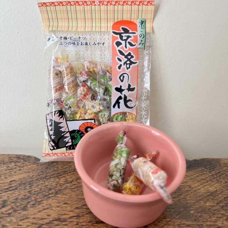 This puffed rice confection comes in three wonderful flavors: matcha, pickled plum with shiso perilla leaf, and nutty peanut. They are perfectly poppable and deliver a satisfying crunch with each bite.