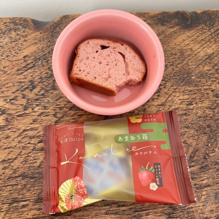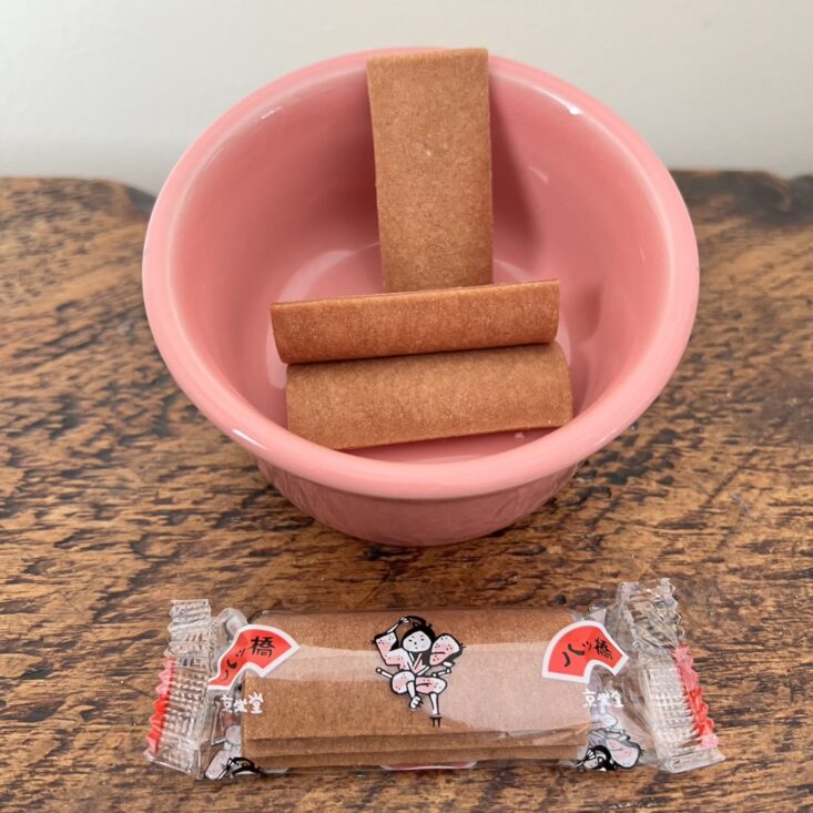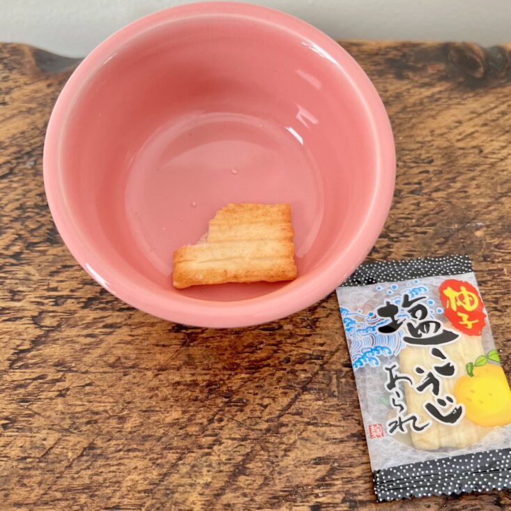 I absolutely love it when SakuraCo includes arare that's been infused with unique flavors. This rice cracker is a Japanese yuzu blend with shio-koji, a fermented seasoning known for its rich umami. At first bite, it gives you a zing of peppery citrus, which tastes increasingly better with each crunch.