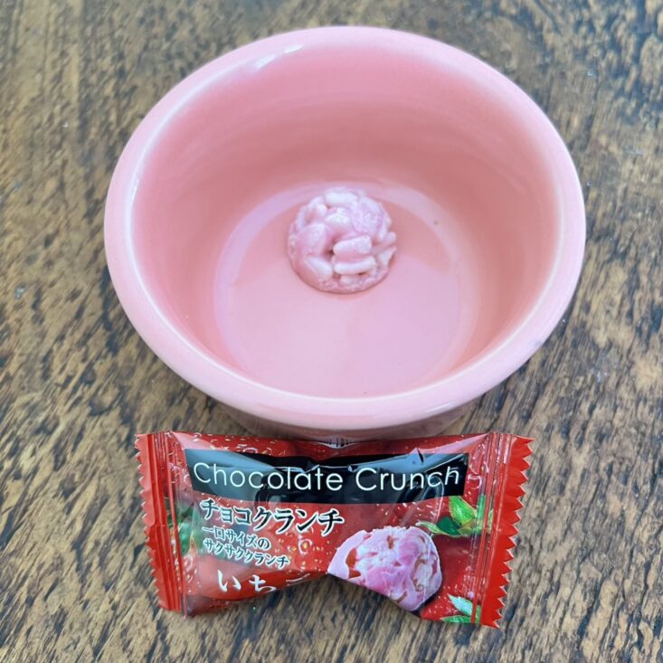 This tiny bite was a total tease. Crispy puffed wheat is coated in smooth chocolate while the irresistable strawberry tang adds balance to this airy snack. It had a nice crunch, but once again, I was wishing I had a few more to enjoy.