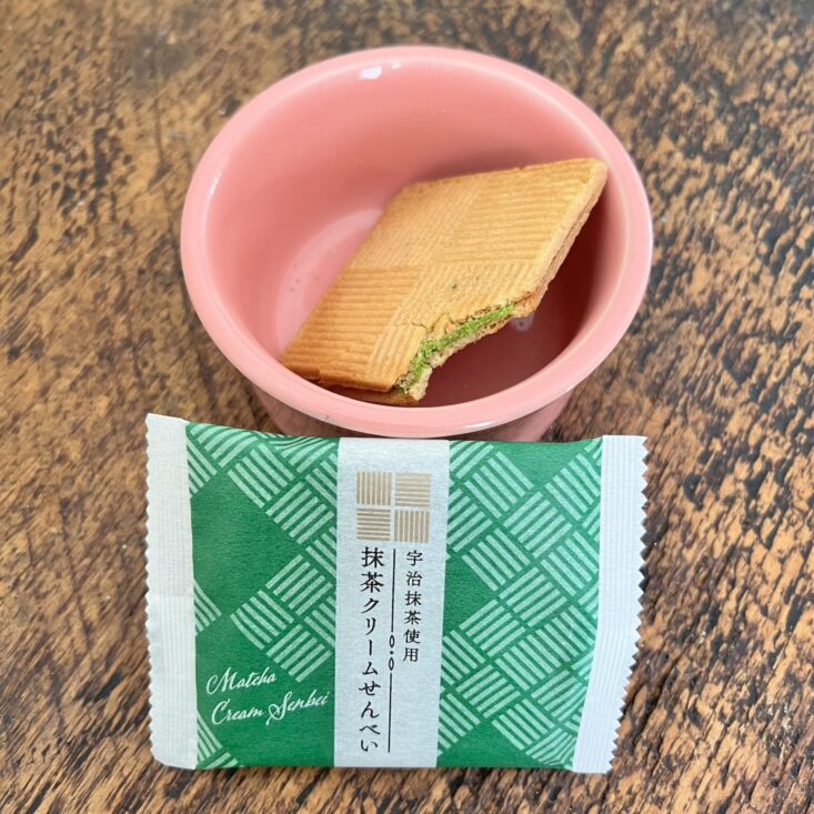 Uji matcha cream is sandwiched between two senbei crackers creating a balance between the airy cracker and the match'a rich depth. I liked this snack, but I really felt like I needed a matcha tea to pair with it!