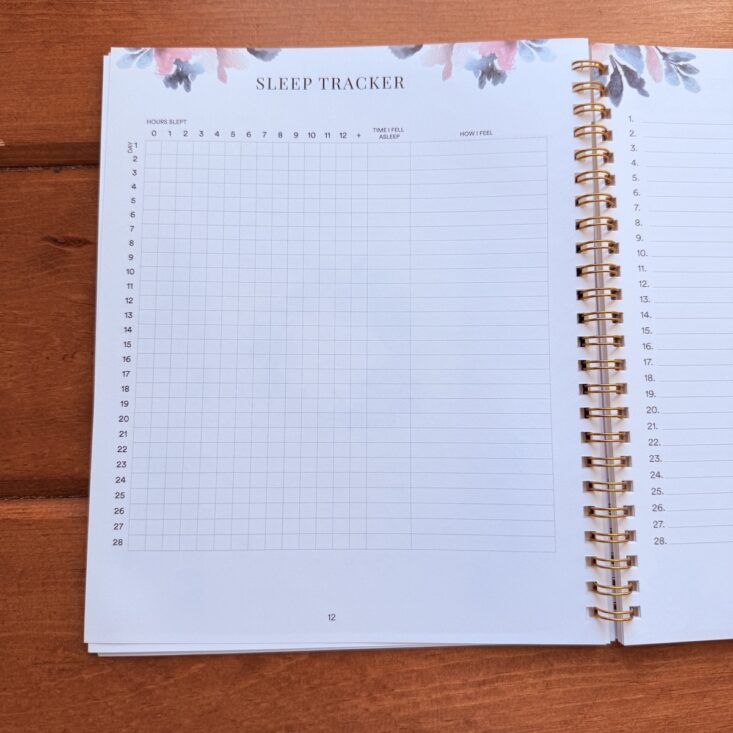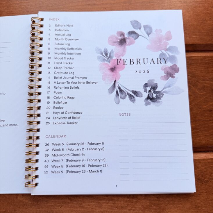 Page 12 features another tracker—this one for sleep. I don’t usually have trouble in that department, so I tend to skip it. The opposite page, though, is one of my favorites. Page 13 introduces the Gratitude Log, with a line for each day of February to jot down something I’m grateful for. I highly recommend this practice, even if you don’t use this specific planner. Especially during tough times, it’s such a gentle reminder of all the good things in life.