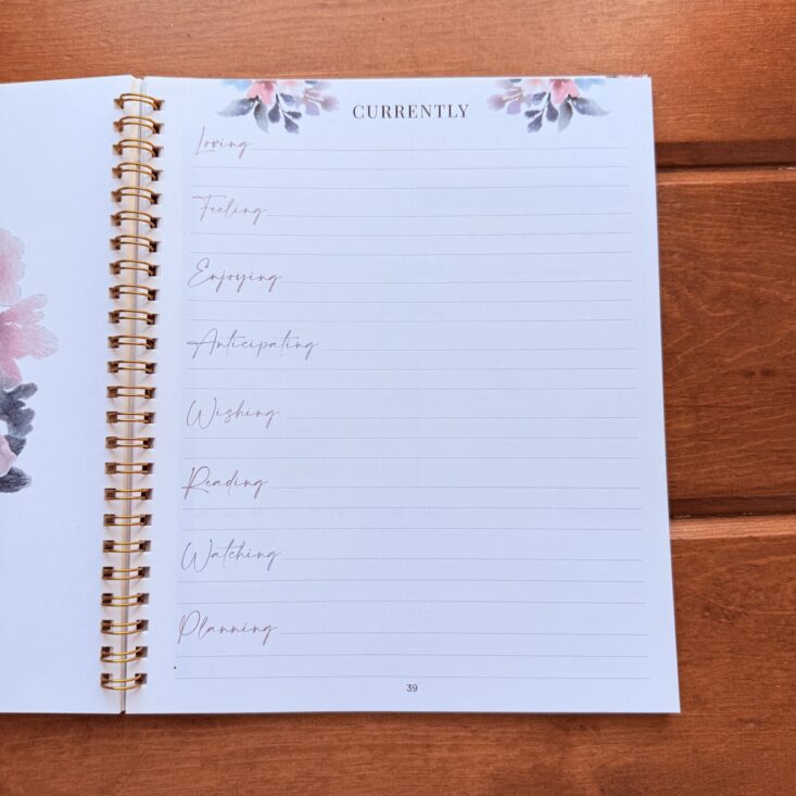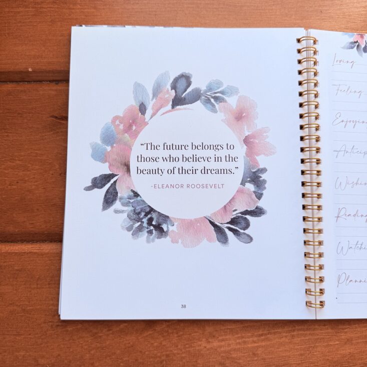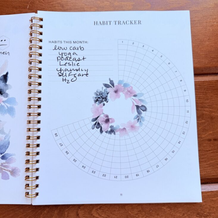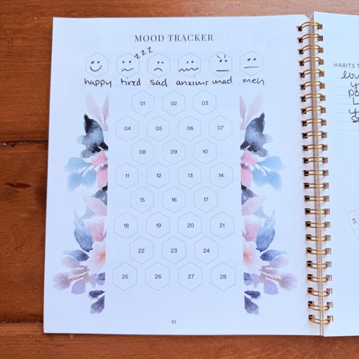 I typically tend to allocate about 15-20 minutes a day to this journal and flip from front to back reflecting, adding to, and processing what I have previously written. By the end of the month, my brain feels much more organized and stable. The beauty of this planner is remarkable, and the packable size means I can tote it around in my purse. Being extremely impressed with all aspects, I am really looking forward to discovering more about myself, all while staying organized and offering myself a little daily quiet time and important self-care.