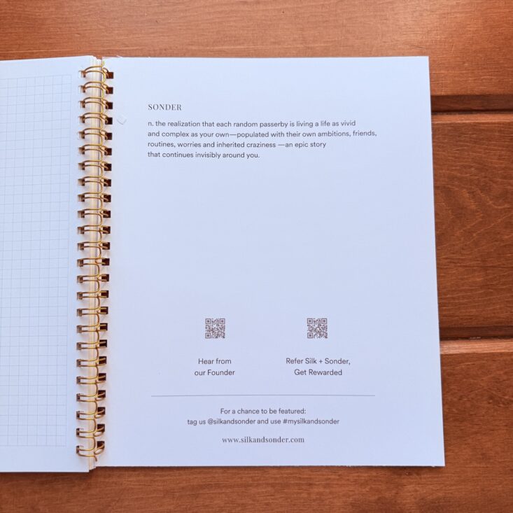 Tidying up with one last quote, the dictionary definition of "sonder," and the back cover, that's all there is to it. I have come to find that a key part of my day is when I sit and fill out my planner with my cup of coffee. This quiet time happens before the kids are awake, and kicks my day off to a good start before I start my school day. It is extremely important for me to keep a consistent schedule for managing my anxiety and creating much more positive life, and this journal definitely is a big help in that.