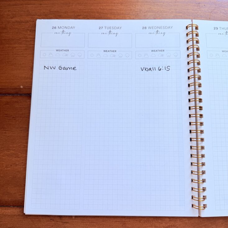 One of my favorite things about Silk + Sonder is getting a fresh new planner each month. That little monthly reset feels so good—year-long planners always end up overwhelming me. This one does include a year-at-a-glance page, but the boxes are tiny, so I mostly use it just to peek at future dates. At the start of each month, I fill in the calendar with any upcoming events, and before I know it, the days start flying by!