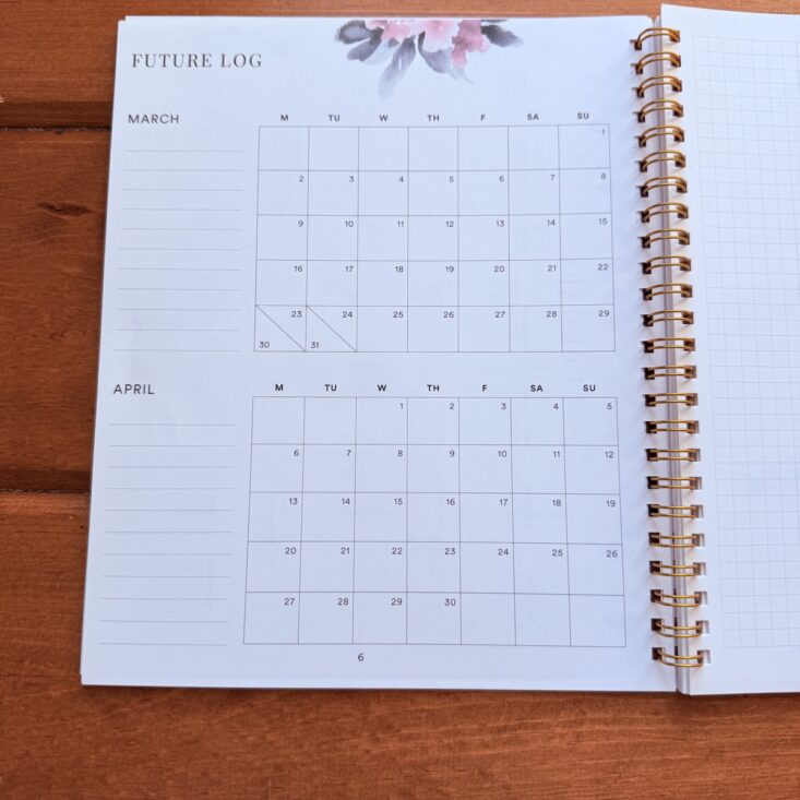 On page 6, we turn to the “Future Log,” which includes two small calendars for the upcoming months. There’s just enough space to jot down quick notes—and honestly, I’m so focused on the now that I don’t even want to think about March or April - though I am excited for spring!