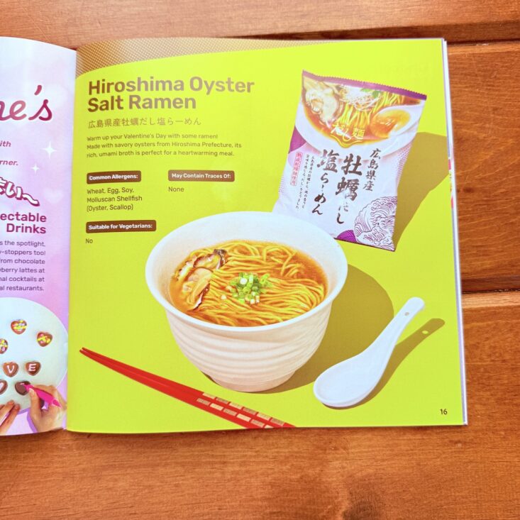 The final item we received was a lunch option! This month’s box included Hiroshima Oyster Salt Ramen, and while we haven’t tried it yet, we love that it lets us enjoy an entire Japanese-style meal just by adding water. This ramen contains the following common allergens: wheat, egg, soy, and molluscan shellfish. The kids were a bit hesitant after hearing “oyster” and “scallop,” but I have a student who LOVES these flavors, so it will be happily enjoyed next week!