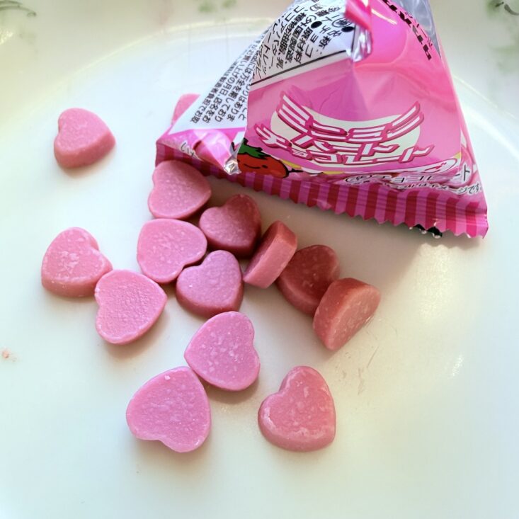 One of our favorite aspects of the TokyoTreat box is the inclusion of fun, packaged snacks. This was our first item with truly cute packaging, and the kids absolutely loved it. Tucked into an adorable little triangular pouch, these chocolate strawberry mini hearts were the perfect way to kick off February. Small in size but big on strawberry flavor, they were an instant hit—and they were pink, too! While the package didn’t contain a ton of hearts, it was a really fun little snack that the kids adored.
