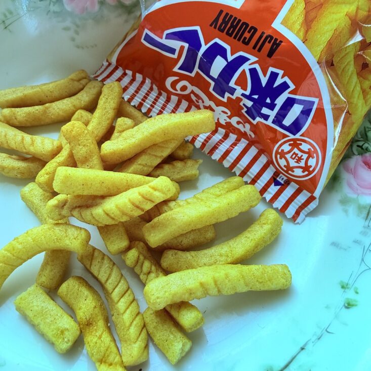 After quite a few sweet treats, I was excited to try these Curry Crackers. Packed with a flavorful blend of curry spices, these orange crackers were fabulous. Made from wheat and shaped like fries, they delivered a curry flavor that was absolutely addicting. With just a little spice, they weren’t too hot and left all of us wanting more. We’d happily take these anytime!