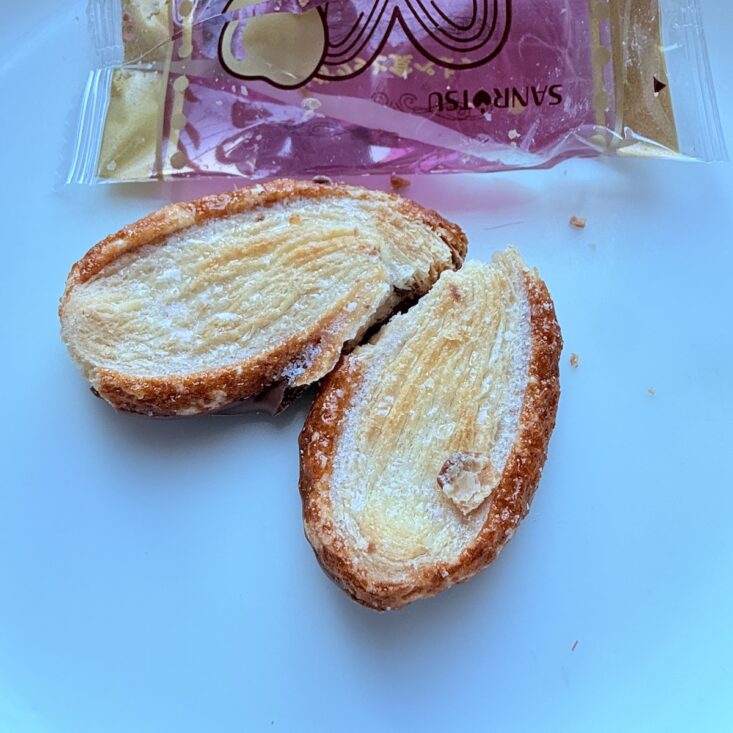 The next item we received was small but mighty. This chocolate Genji Pie was heart-shaped—perfect for Valentine’s Day—and featured layers of flaky dough covered in chocolate. A sweet and tasty little treat, the kids and I split it three ways, and we all agreed it deserved two thumbs up!