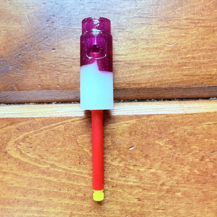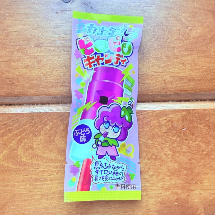 Charlie was thrilled to receive the next item. He’s all about silly snacks, and this one was truly unique. A grape-flavored whistle lollipop wasn’t on my bingo card, but Charlie was beyond excited! With a grape flavor and a fun whistle-shaped end, you could literally whistle a tune while enjoying it. A playful addition, Charlie would definitely love more candies like this in the future!