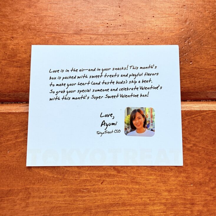 To welcome us to TokyoTreat, we first received a cute polaroid type picture with a note from Ayumi, the TokyoTreat CEO. A sweet addition, this truly makes me feel like part of the family! ❤️