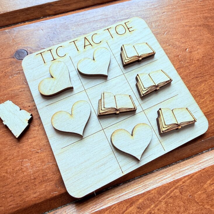 The next item we received wasn’t listed in the content pamphlet, but it ended up being one of Charlie’s favorites. He loves playing tic-tac-toe, and this version features books and hearts as the game pieces. It eliminates the need for paper and pencils, making it perfect to bring along to basketball games, car rides, or anywhere on the go. We love it!
