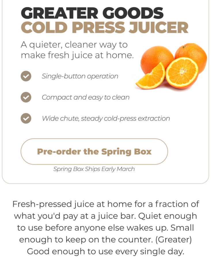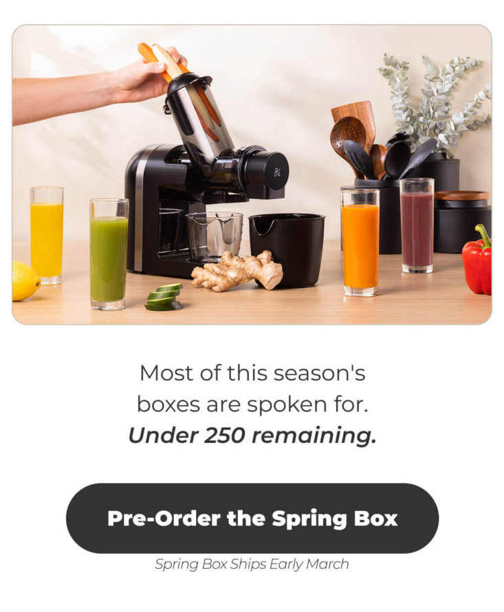 This season's box is packed with smart upgrades to refresh your routine and power up your wellness. From fresh-pressed juice to effortless charging, this box is all about living lighter, healthier, and more connected. Think daily health tracking, kitchen-ready tech, and clever gadgets that simplify your life. Spring into something better — limited quantities available.