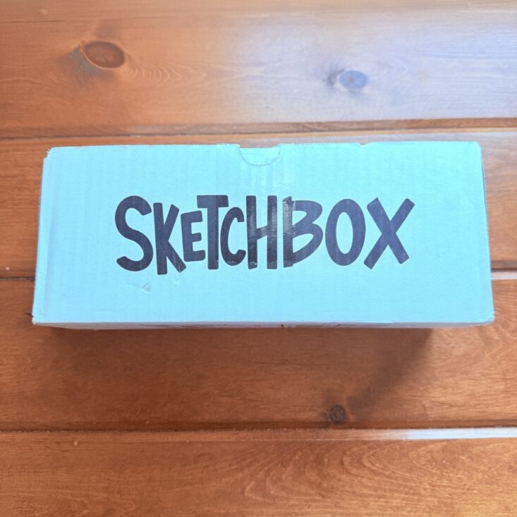 Each month, SketchBox sends a lovely curation of supplies in a simple white box featuring key information and a QR code. Everything is packaged in bright blue tissue paper (this time with white lettering) and arrives safe and secure. It’s always a special treat when I see this in my mailbox!