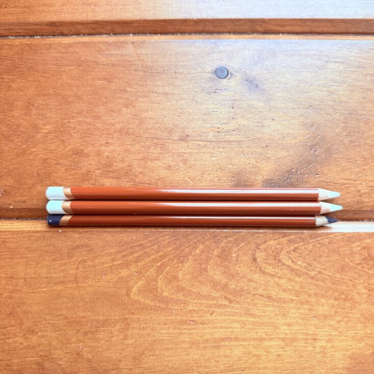 The next item I received was a set of three Derwent drawing pencils. With a smooth grip and excellent pigment, this variety pack is perfect for sketching. Paired with the blue-toned paper we received this month, all three hues really stand out and worked together to create this month’s illustration with ease.