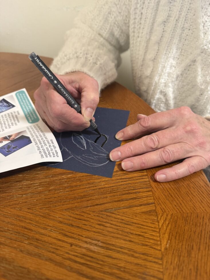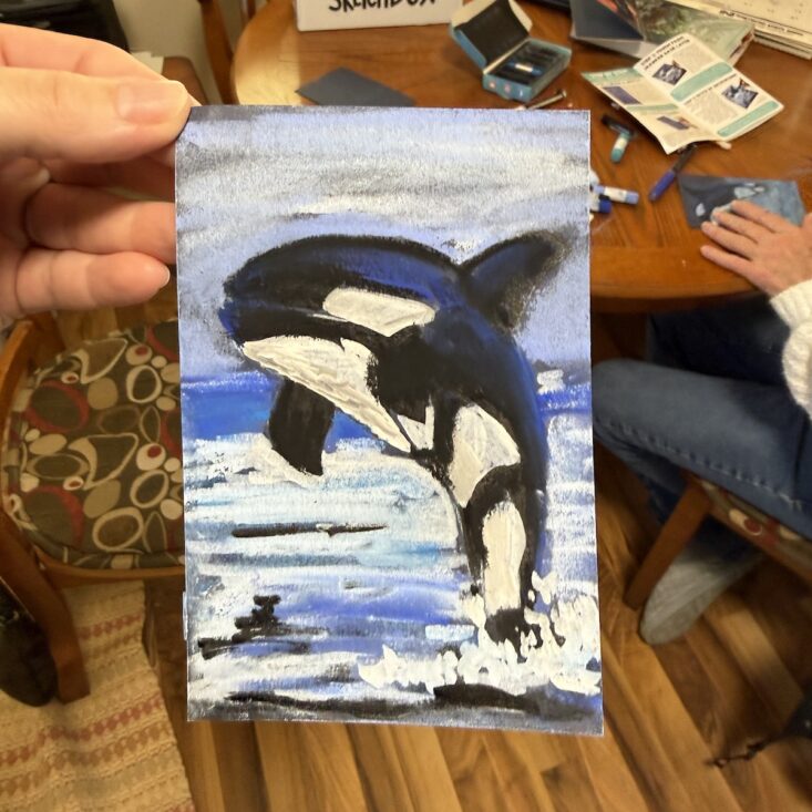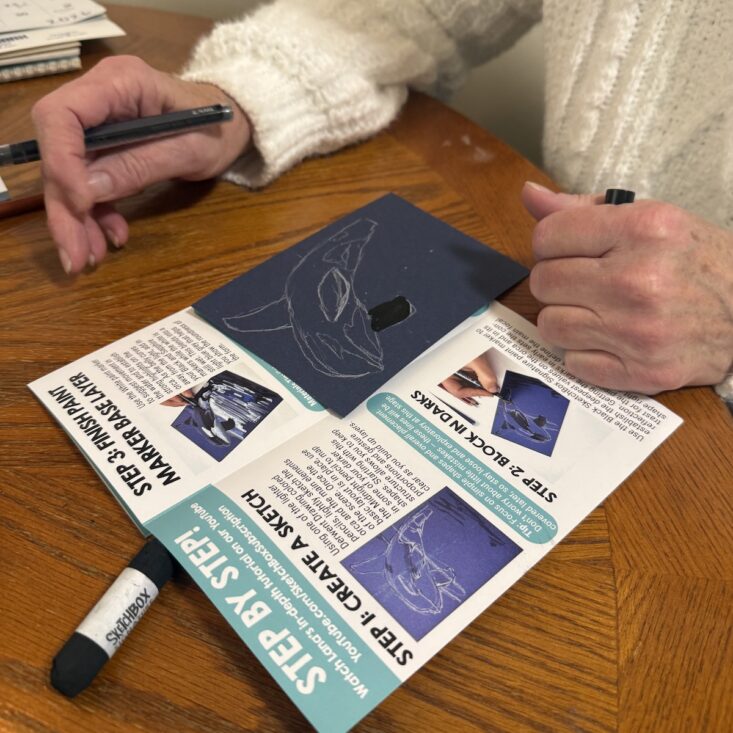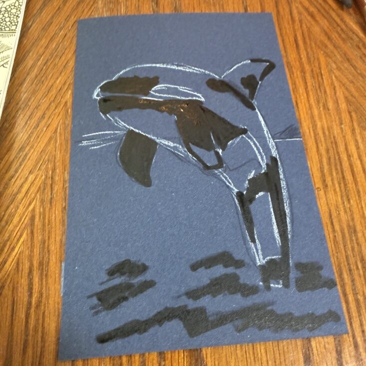 I have to say, while I love SketchBox for their amazing premium supplies, I’ve come to love their step-by-step tutorials just as much. This month’s pamphlet featured an orca on the front, which thrilled both my son and me. We actually packed the box up and brought it three hours west to my mom’s house for a little art sesh.