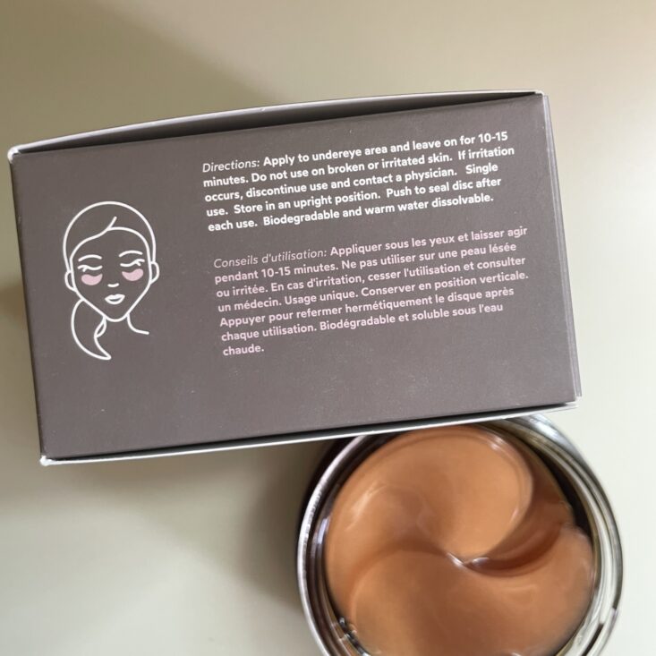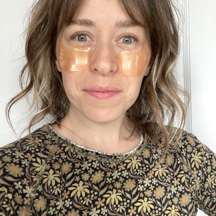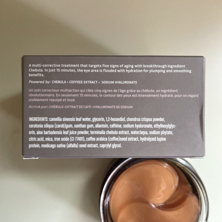 Remember these guys? I'm sure you do. They're still comically huge on my face, and still glorious to use. Super serum-y and they faintly smell refreshing. The idea is that within minutes, everything looks smoother and more awake. Caffeine and green coffee extract are to thank for that quick work. Chebula—the antioxidant powerhouse at the center of the formula—gives these patches a more long-term, skin-supportive feel rather than just a quick cosmetic fix. Hyaluronic acid and aloe flood the area with moisture, softening fine lines, while lupine protein helps create that subtle firmness you can actually see. After 10-15 minutes of wear, peel these babies off and let them biodegrade.