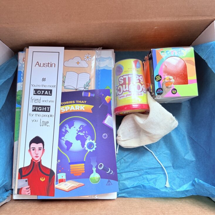 This quarter, Charlie is working on another Book Buzz project, which includes writing a summary of a book and presenting it to his class. This month’s beTWEEN the Bookends box arrived at the perfect time to help him complete his Book Buzz! Packed with fun books and awesome lifestyle items, it’s a great way to support his reading goals—all while having a great time. Keep reading to see what we discovered!