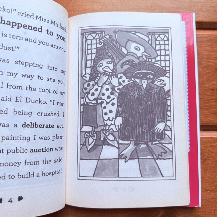 Charlie loves quick reads, and this one was just that. With fun illustrations and large font, it didn’t take him long to finish, and he really enjoyed the mystery aspect of the story. He was especially entertained by the duck characters and thought it was silly and fun. He really liked this book, but he enjoyed the next one even more!