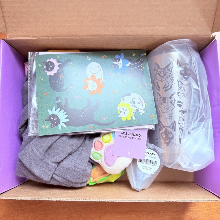 Cats are my absolute favorite animal—especially when my dogs are being extra naughty—and I love adding fun, cat-themed items to my everyday life, which is exactly where CatLadyBox shines. I’m always excited to receive this subscription and can’t wait to see what shirt arrives each month. This month’s tee-shirt, tumbler, and lint rollers are all things I can use daily. And while the toys weren’t immediately loved by Miley, I know she’ll warm up to them. 🐱