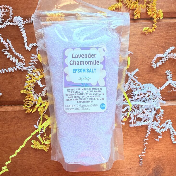 The last item we received was a large bag of Lavender Chamomile Epsom Salt. This coarse magnesium sulfate has the most relaxing scent and includes two of my favorite helpers for managing anxiety! The combination creates an incredibly moisturizing and calming bath. Perfect for soaking after a long day, my muscles genuinely felt better afterward. This was such a soothing addition to the box and included enough for multiple relaxing baths for the whole family!