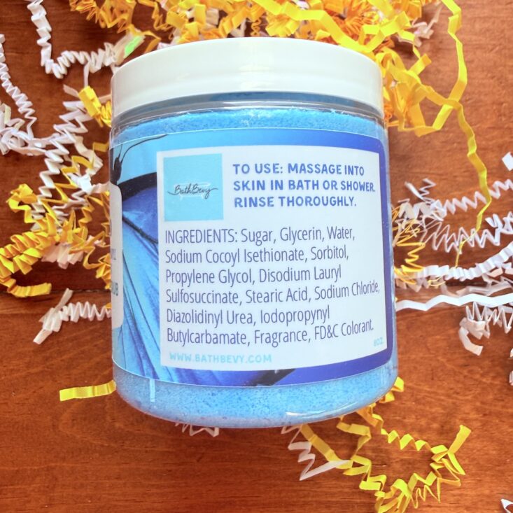 Unlike some subscription boxes, this blue and white box presents beautifully. Not only does this box have some serious weight to it, but it also boasts theme-coordinating tissue paper, a sweetly placed sticker, and crinkle paper! These small but thoughtful touches make this truly feel like I am opening a gift, which makes it all the more fun! Besides the items, Bath Bevy also includes an info sheet detailing all of the products included.