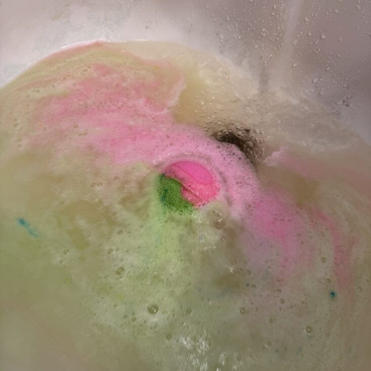 This bath bomb barely fit in the palm of my hand and created some really pretty bath art at first, though it eventually turned a bit brown. The scent filled the entire bathroom, creating a sweet, relaxing oasis, and it made for a super soothing soak. I highly recommend these bath bombs!