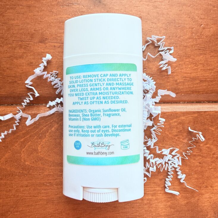 To stay hydrated while keeping my fingers and palms lotion-free, this box included a lotion stick. Looking just like a stick of deodorant, it’s made with sunflower oil, beeswax, shea butter, vitamin E, and fragrance for easy application. It glides effortlessly onto my arms, legs, and the tops of my hands without smudging up my keyboard.