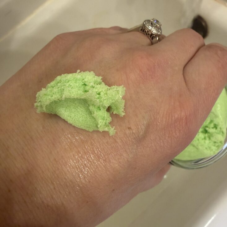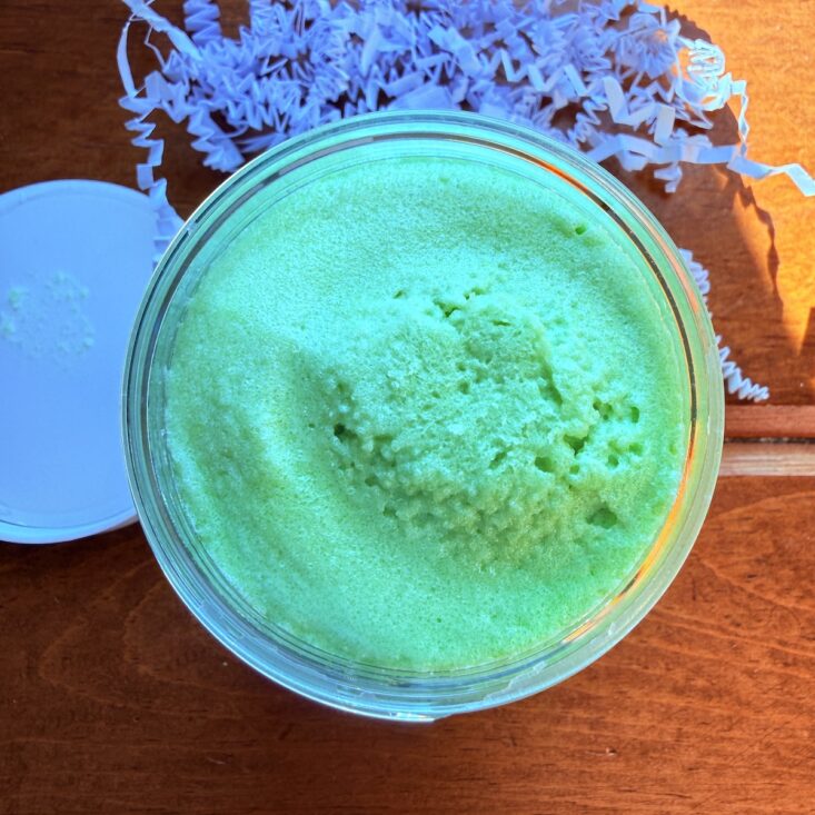 Soap scrub is definitely one of my family’s favorite inclusions in the tubless box. Made with sugar, this soapy scrub does a fabulous job of gently removing the day’s grime. It’s fun to use and super functional—especially helpful before a shave or after a long day at baseball practice.
