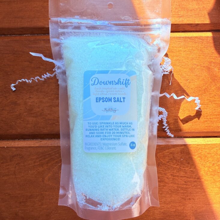 The last item we received was a large bag of Downshift Epsom Salt. This coarse magnesium sulfate has a very “grandma scent” in the best way! With notes of soft florals, it truly reminds me of my grandma Carol, and I really needed that after the week I’ve been having.