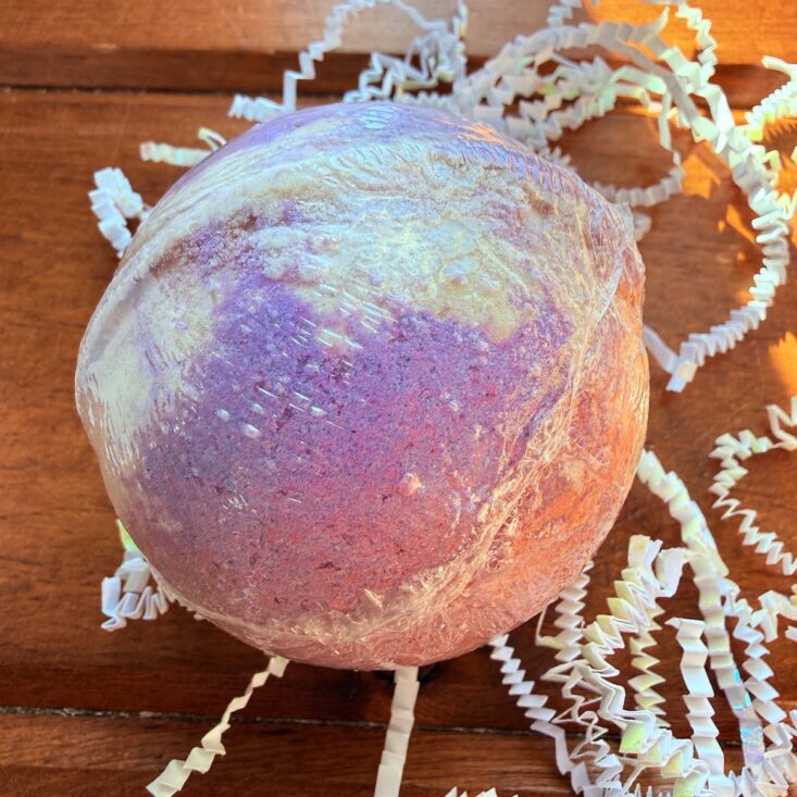 Another winner in this month’s box was the “Lavender Champagne” bath bomb. This version is scented with lavender oil, citrus notes, and sweet vanilla. It created the ultimate relaxation experience when I dropped it into the tub, and the infused water left my skin feeling silky, soft, and hydrated.