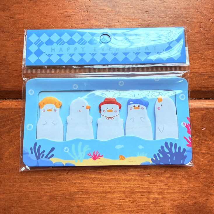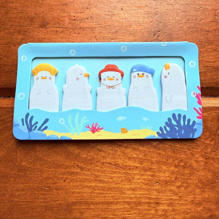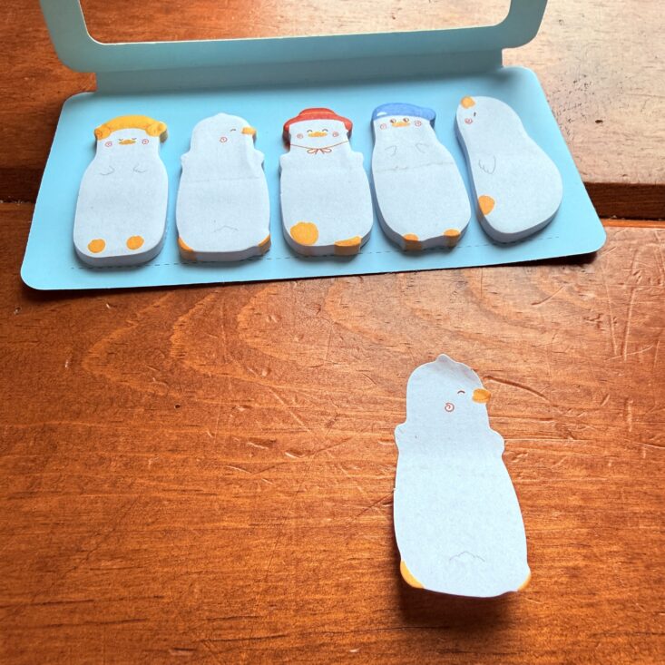 The last item we received was a pack of duck-themed sticky notes. Featuring five different ducks, these tiny post-its function more like page markers than a space for writing notes. Each duck has its own hair, hat, and facial expression, making them really cute—but they were a little lost on Charlie since it’s not something he would use.