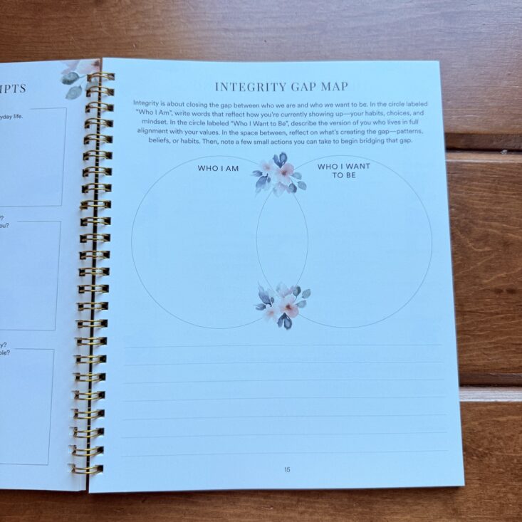 We were also given an “Integrity Gap Map” on page 15, and while I haven’t completed it yet, I’m looking forward to exploring the space between “Who I Am” and “Who I Want to Be” this month. I love these kinds of reflective activities—they really help bring clarity, self-awareness, and a sense of direction.