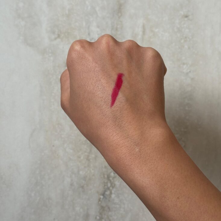 Another one where the packaging undersold the product. At first glance? Not convinced. But this lipstick surprised me. The shade is a rich, deep red with serious impact, great for a pout moment. And despite looking chalky in the tube, the formula is actually pretty creamy, so application is more precise than you'd expect. The one caveat: it's a little smudgy for my taste, especially for a red. I'd skip this one for a long dinner out and save it for occasions where you can touch up.