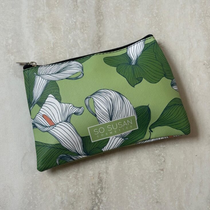 I love that this comes packaged in a small makeup bag (valued at $12). The pattern on this one is really cute, and the size feels ideal for tossing a few essentials in your bag while traveling.